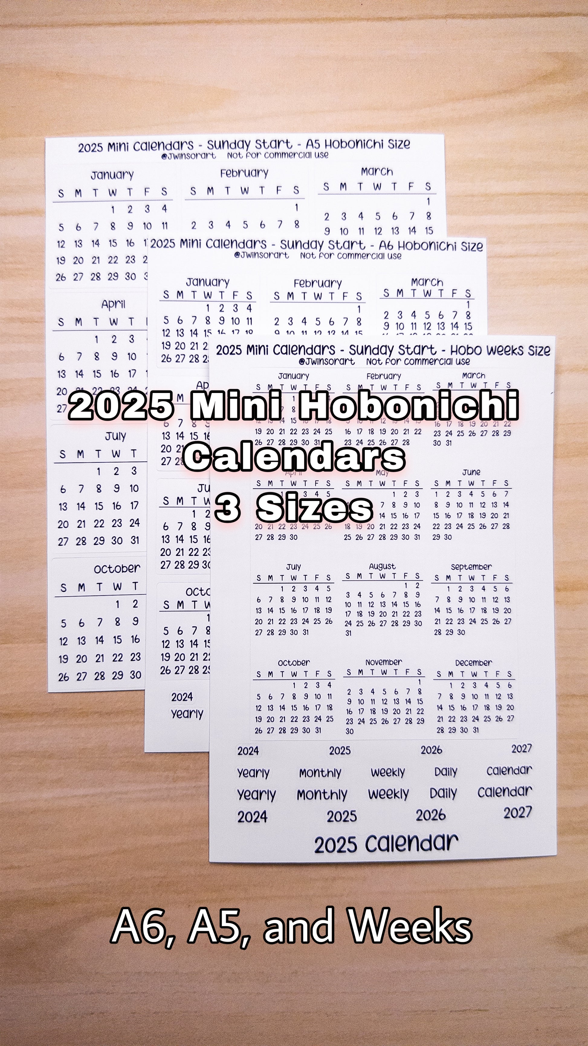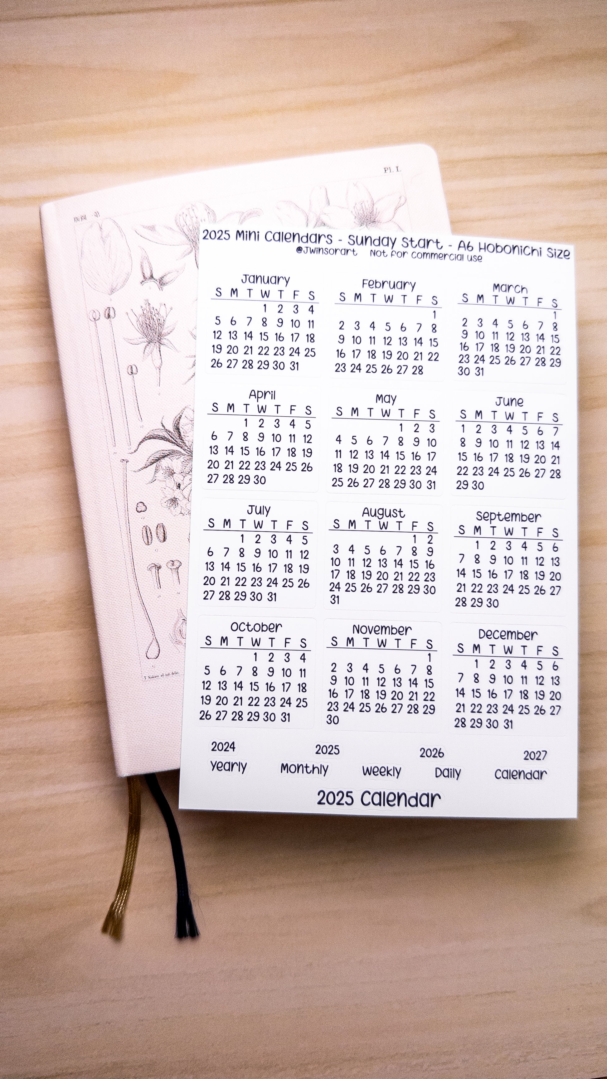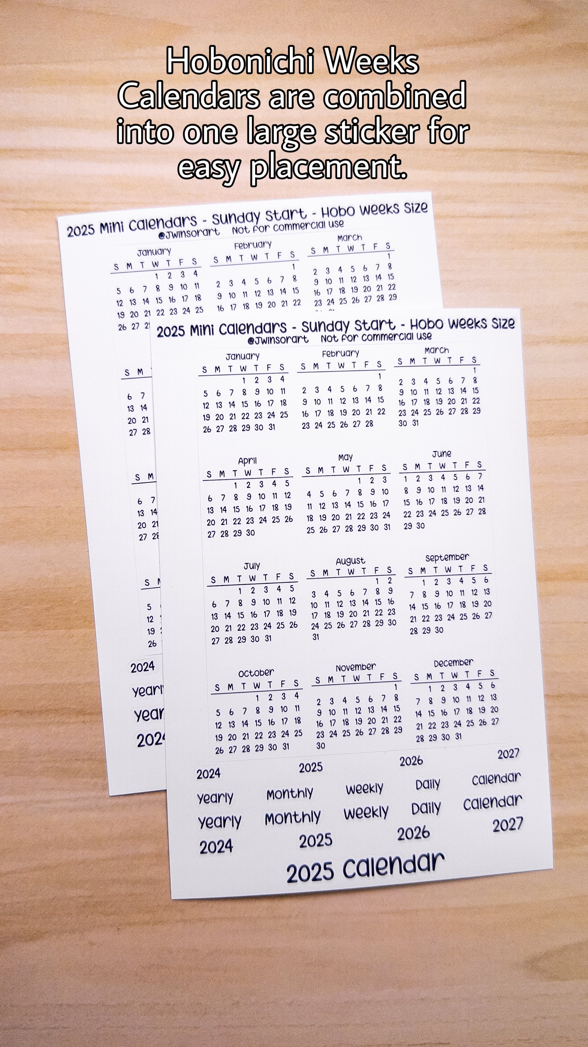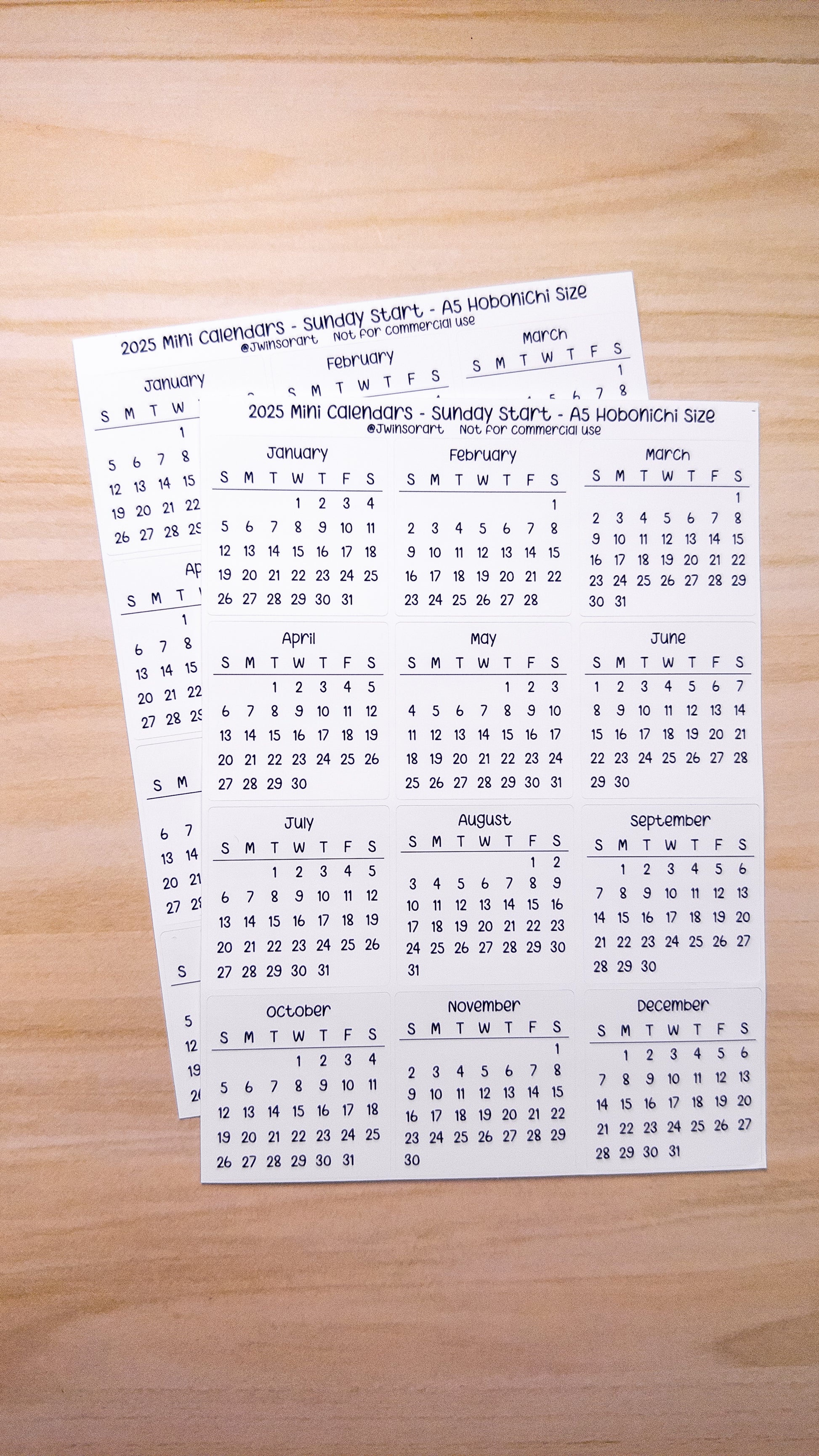 2025 Mini Calendars Hobonichi A5 A6 Weeks Sizes Sunday Start Planner Sticker Sheet Bujo Jan Feb Mar Apr May Jun Jul Aug Sept Oct Nov Dec