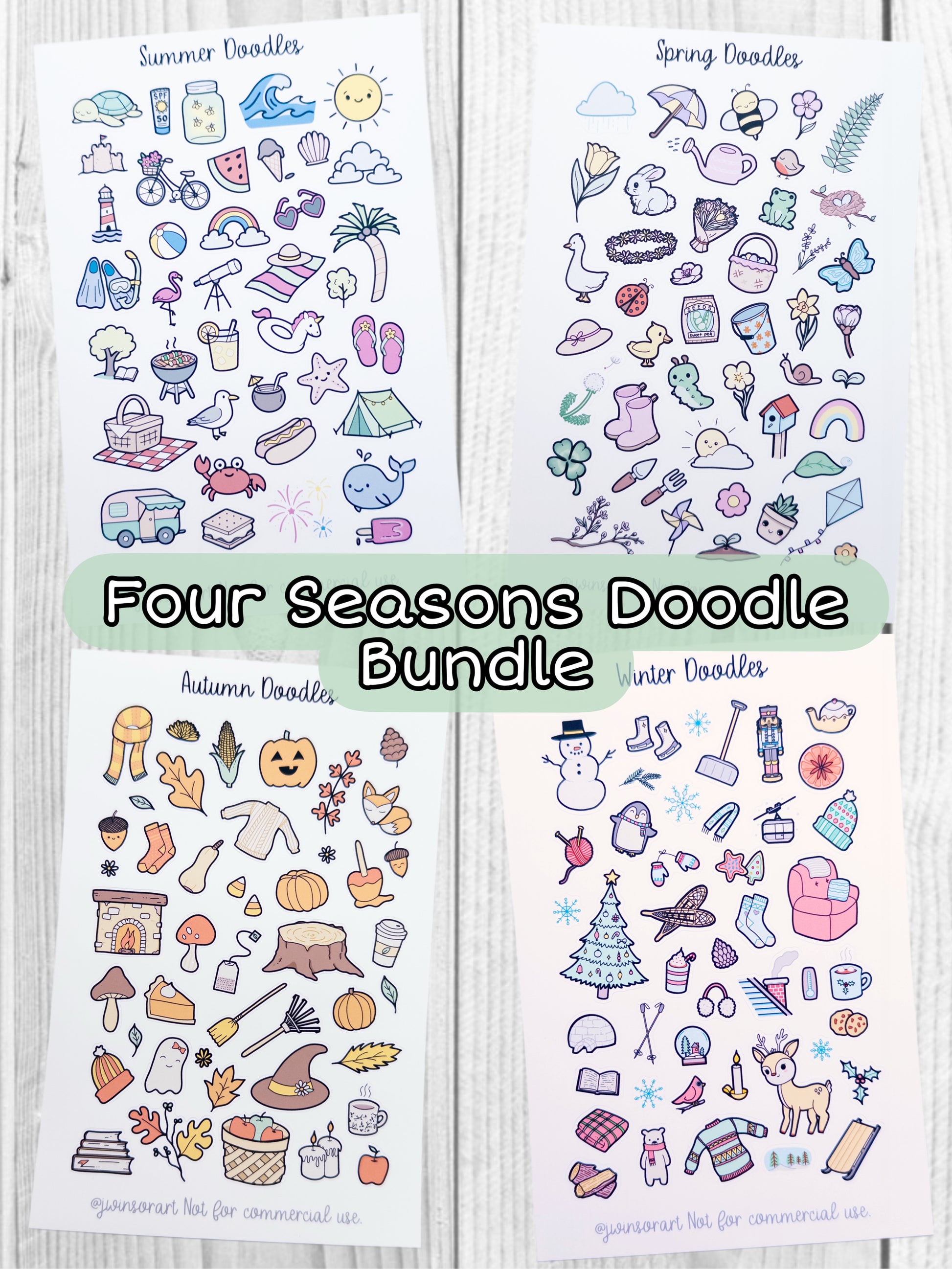 All Four Seasons Doodle Bundle Winter Spring Summer Fall Autumn