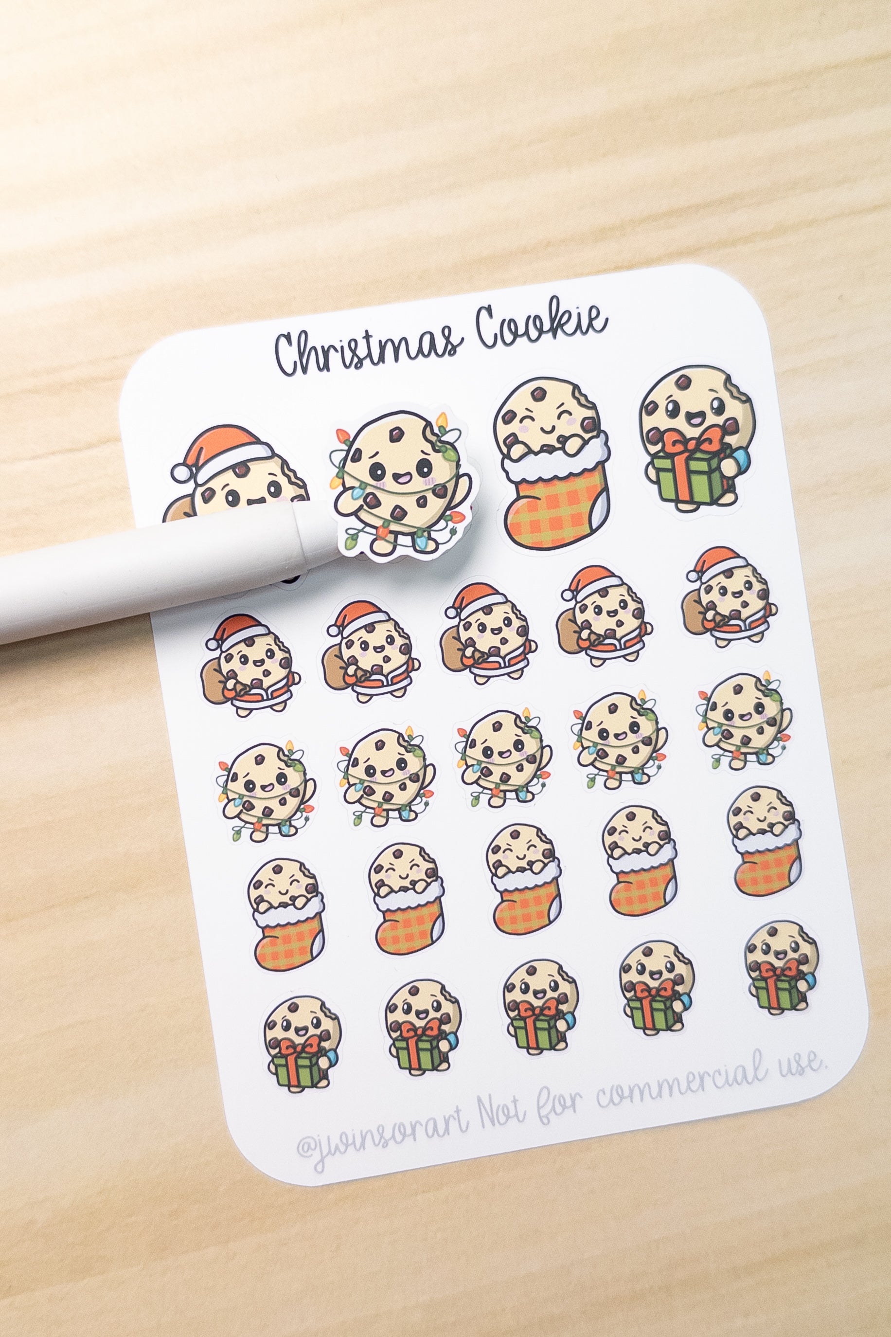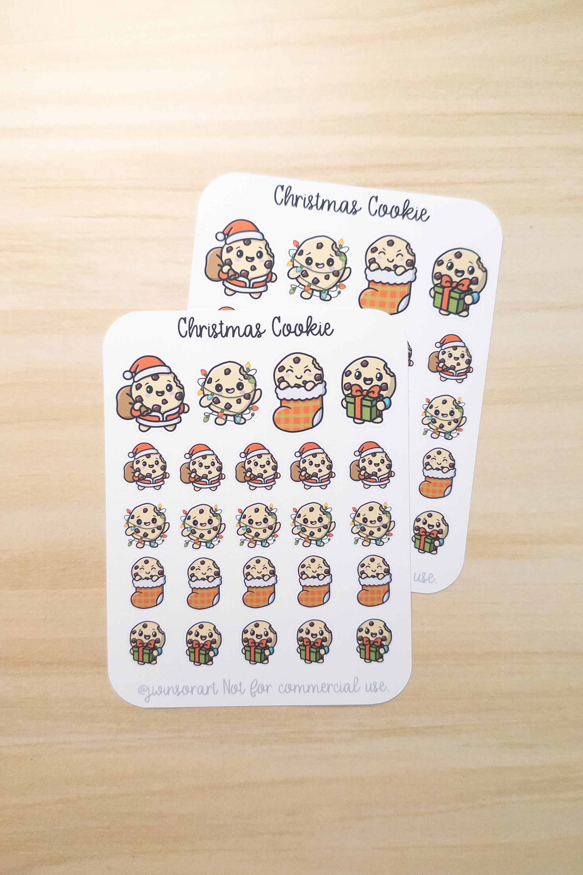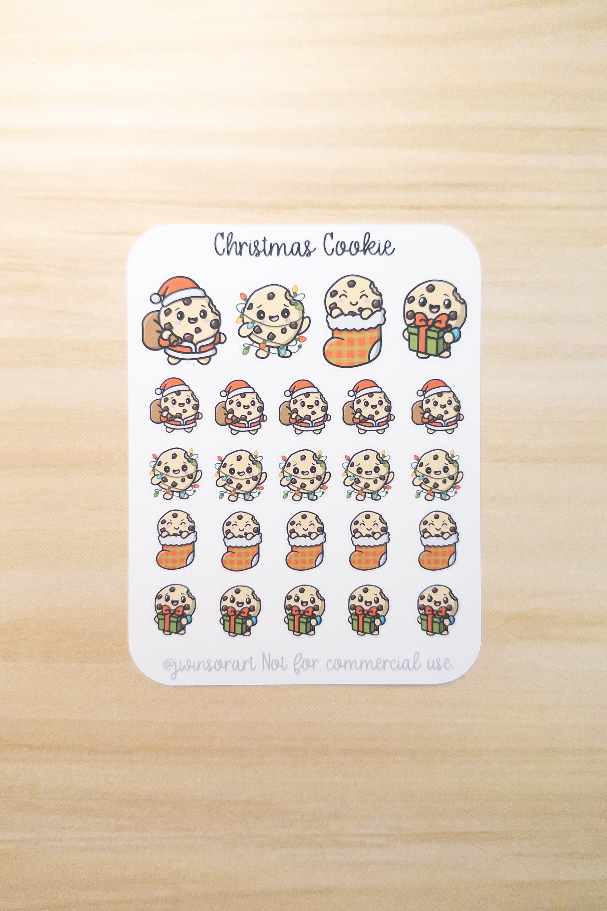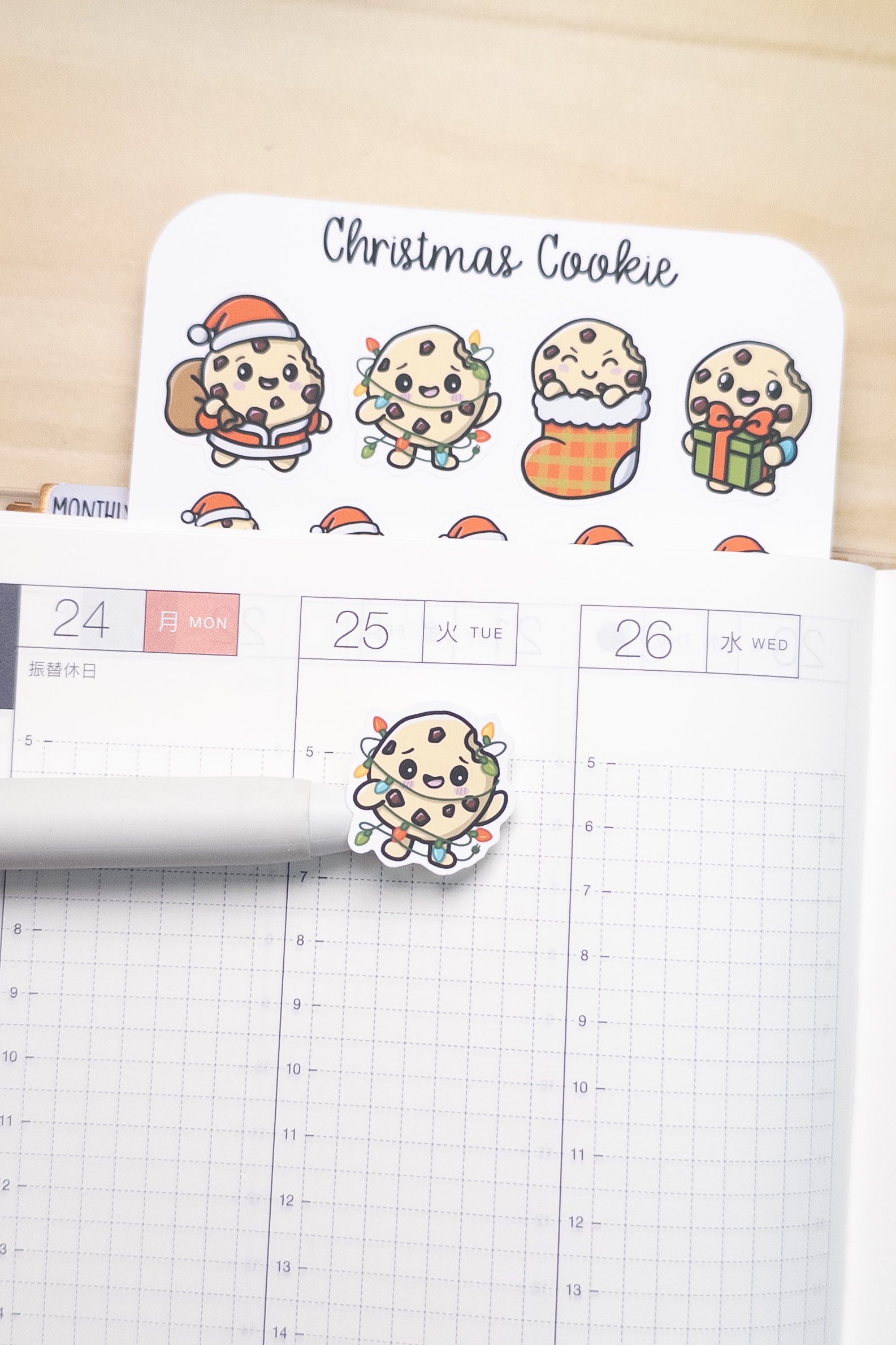 Christmas Cookie Stickers β Cute Holiday Planner Stickers, Kawaii Cookie Character, Santa, Gift, Stocking, Lights β Hobonichi, Journal, Scrapbook