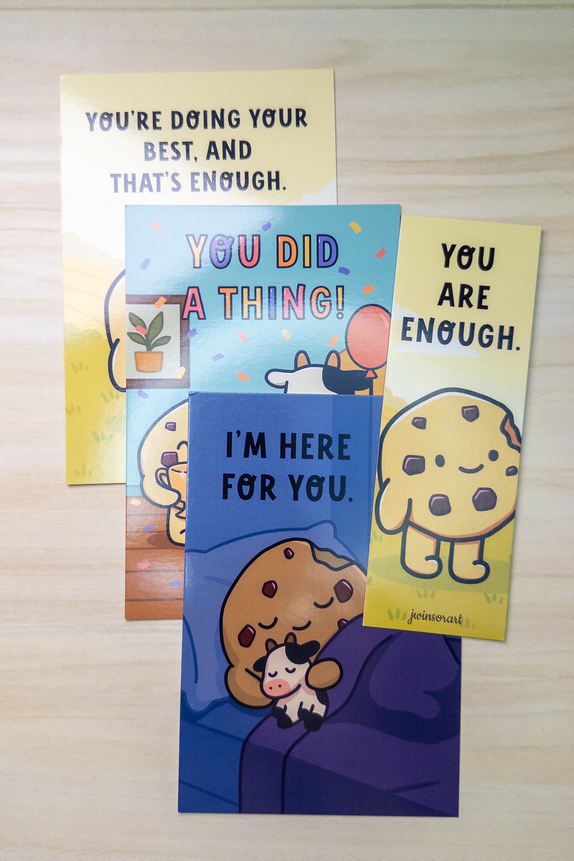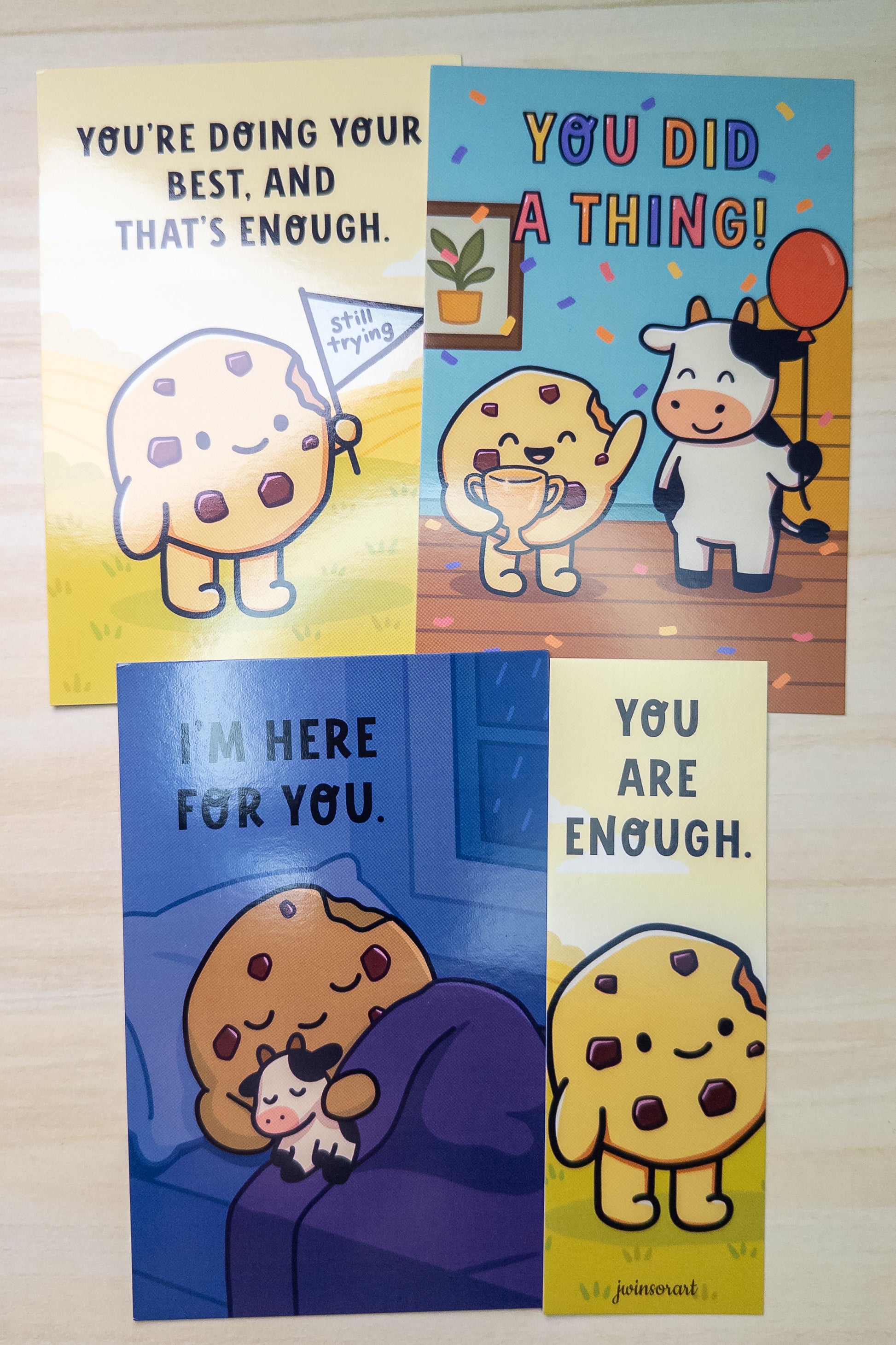 Comfort Cookie Postcard Set – Uplifting & Encouraging Illustrated Cards - Bundle of 3 + Bookmark