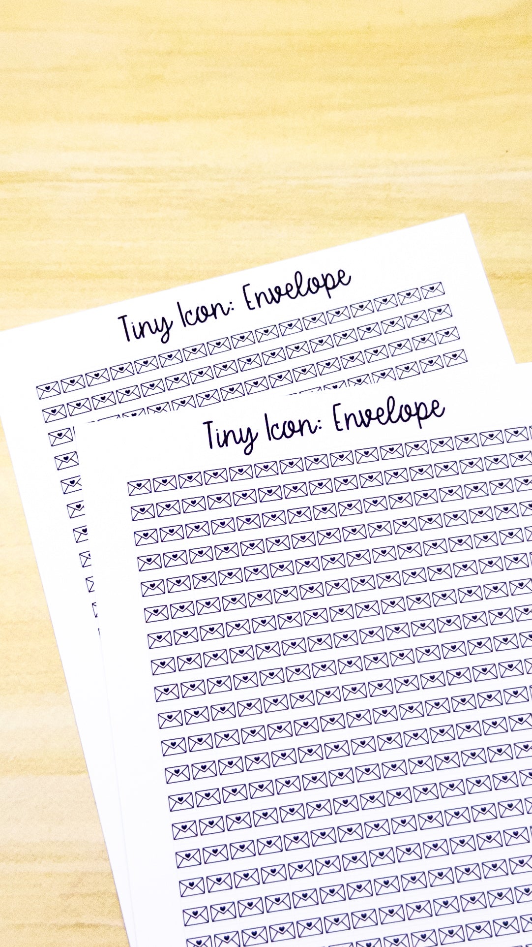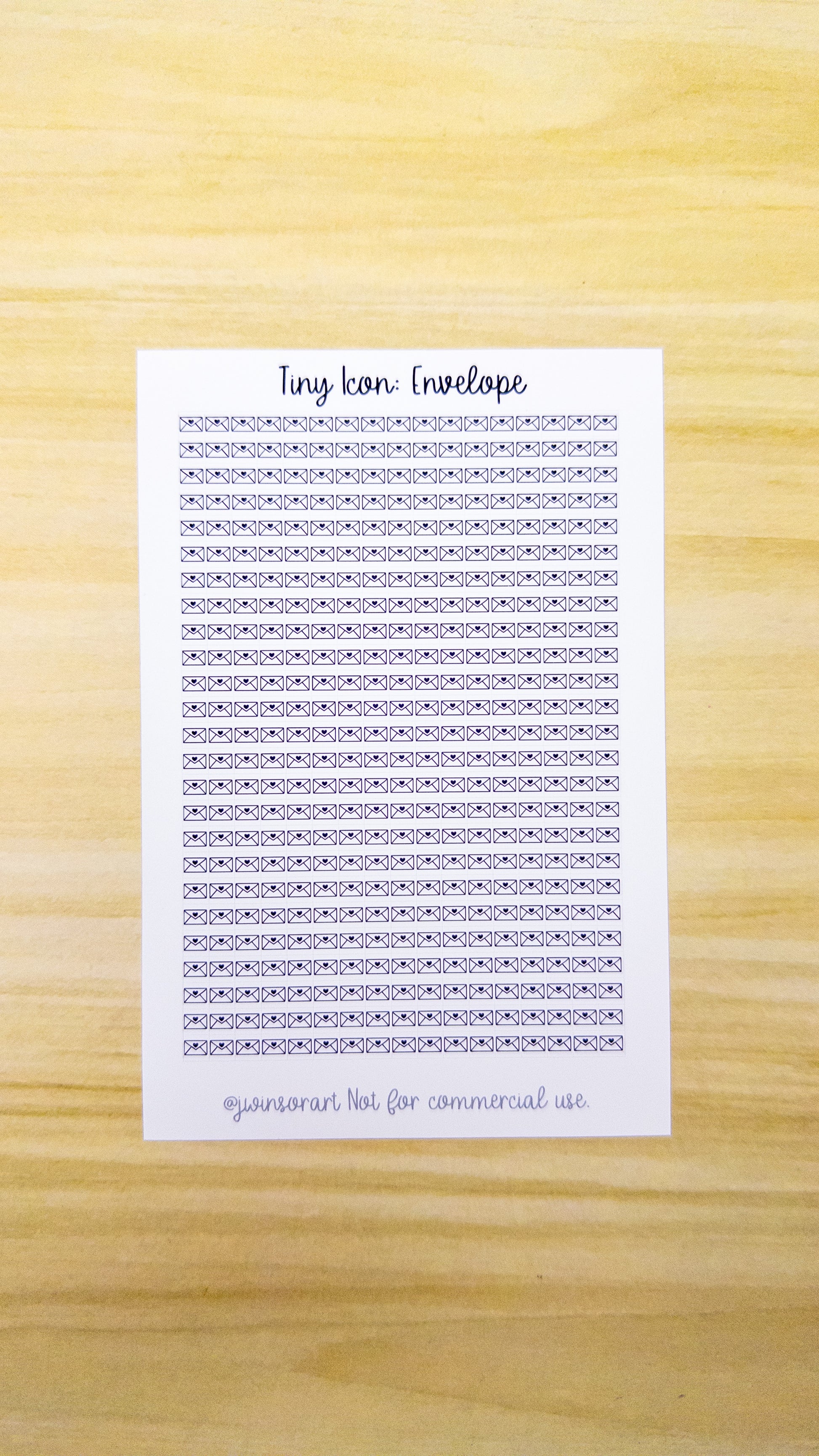 This listing is for one sticker sheet containing a tiny icon of an envelope for your planner, bullet journal, and other scrapbooking needs. Can be used in Hobonichi, Happy Planner, Filofax, Erin Condren, or any other planner. This sheet contains 425 stickers total. Stickers are 5 mm square.