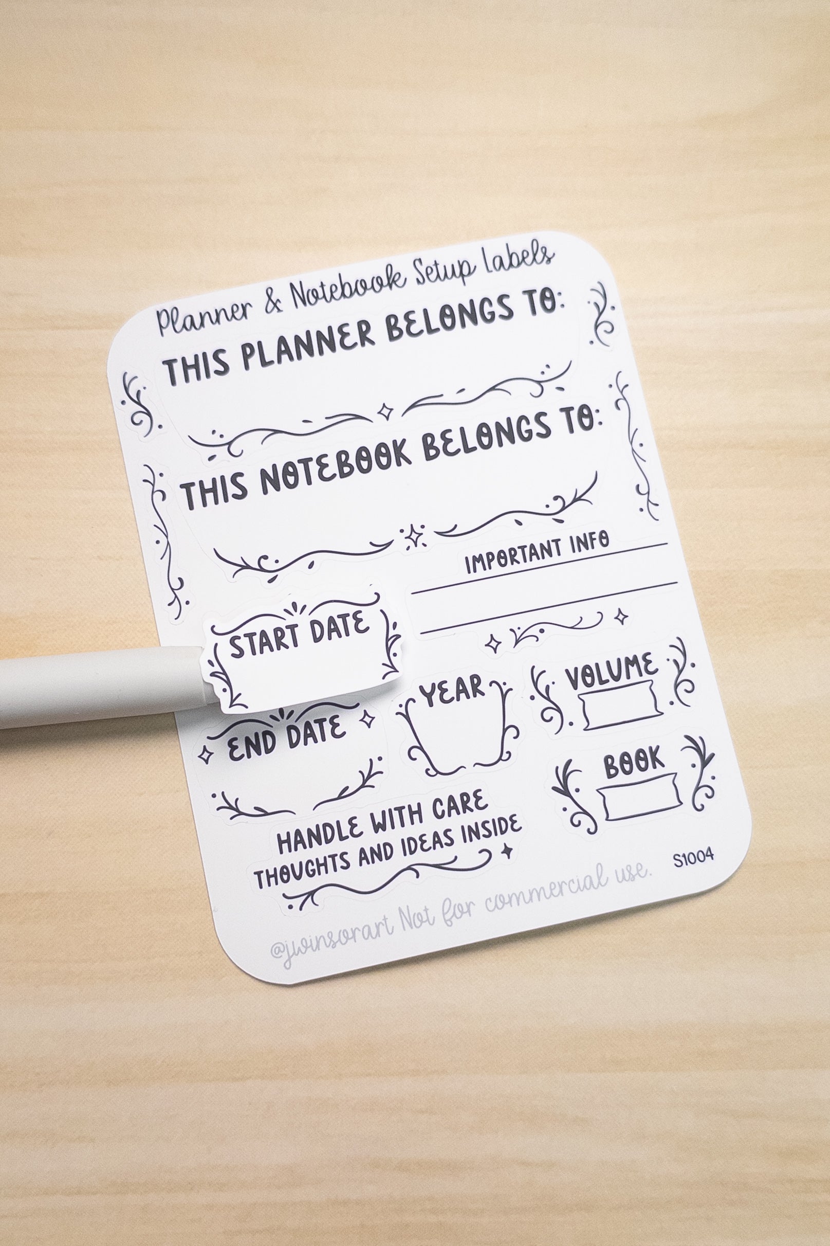 Planner & Notebook Setup Labels – Interior Cover Stickers for Belongs To, Start/End Dates, Year, Volume Tracking, and More