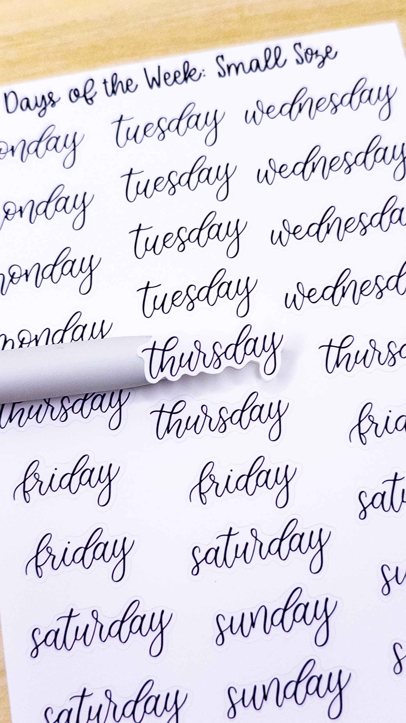 Days of the Week Planner Sticker Sheet Bujo Bullet Journal
