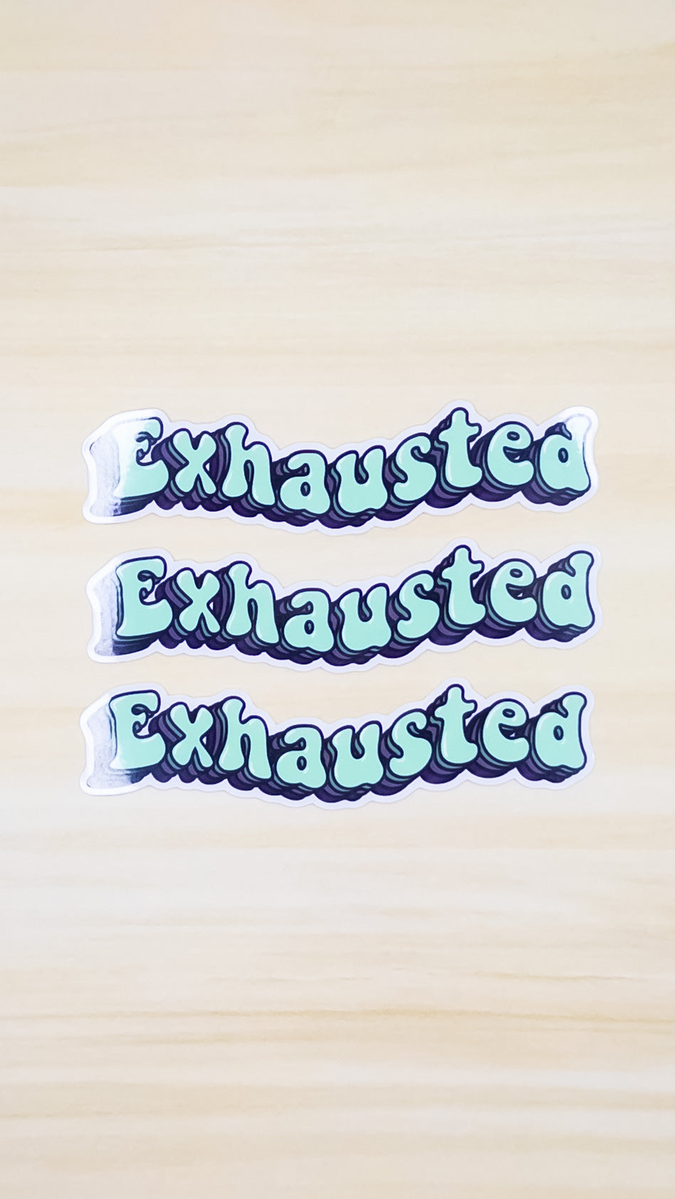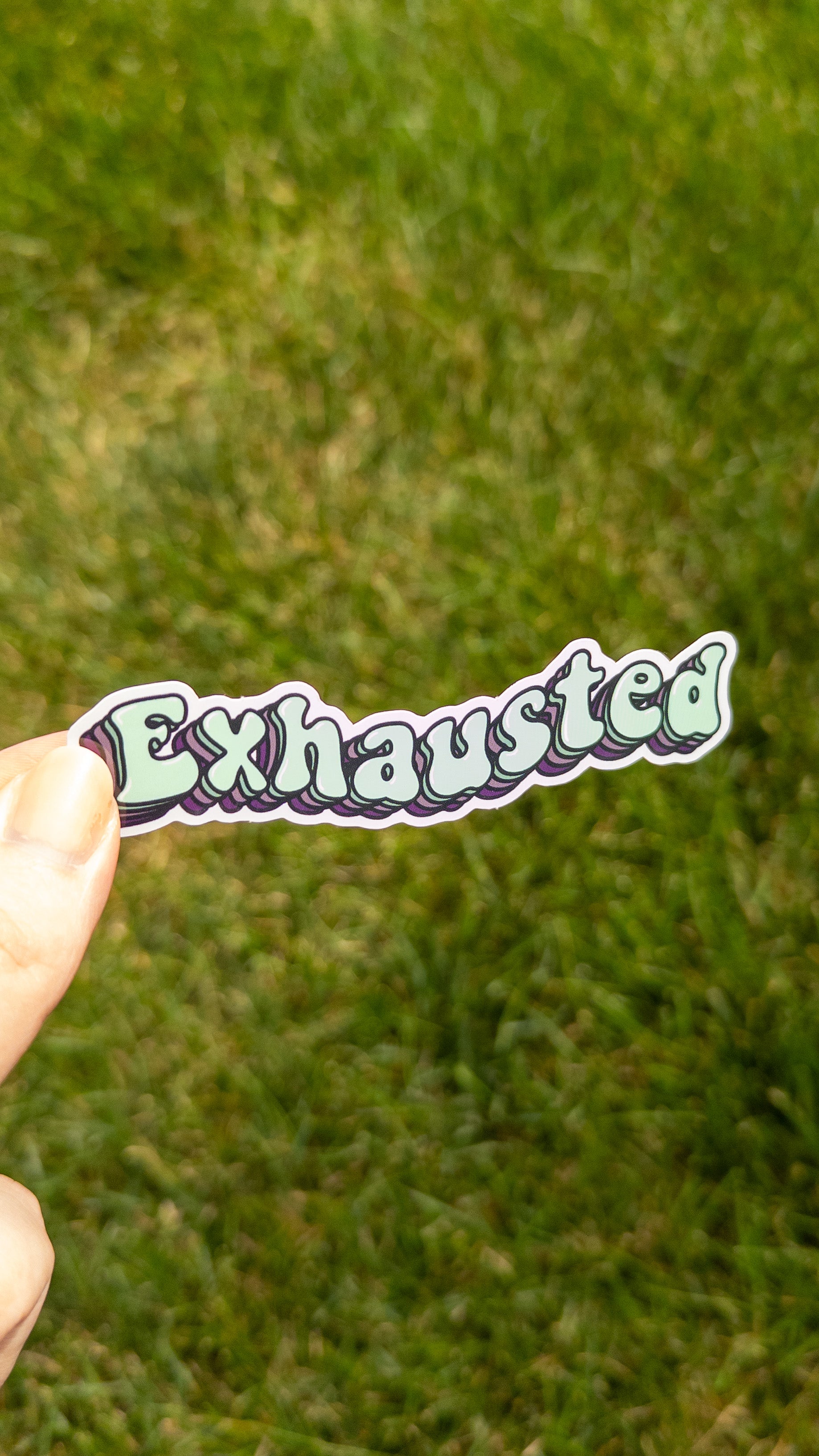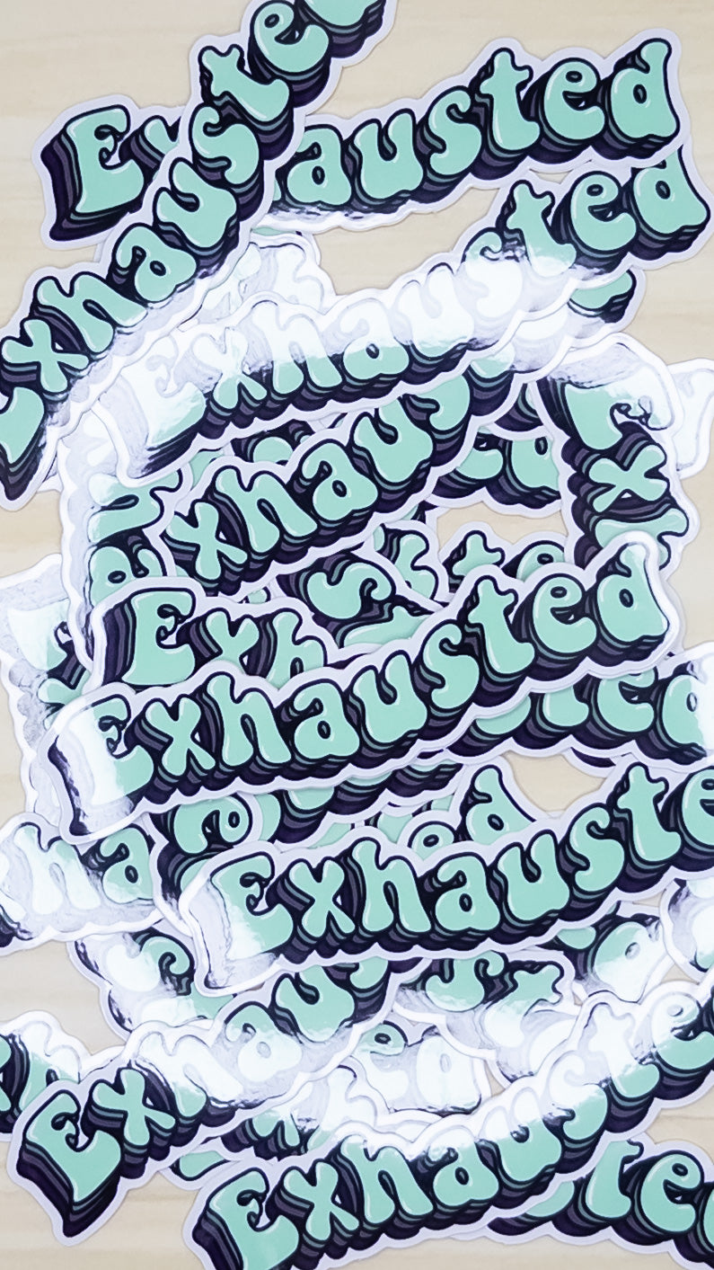 This listing is for one vinyl sticker that tells the world you're "exhausted" in a fun retro font. The vinyl sticker measures 4 inches by 1 inch. Sticker is weather proof and has a glossy finish.