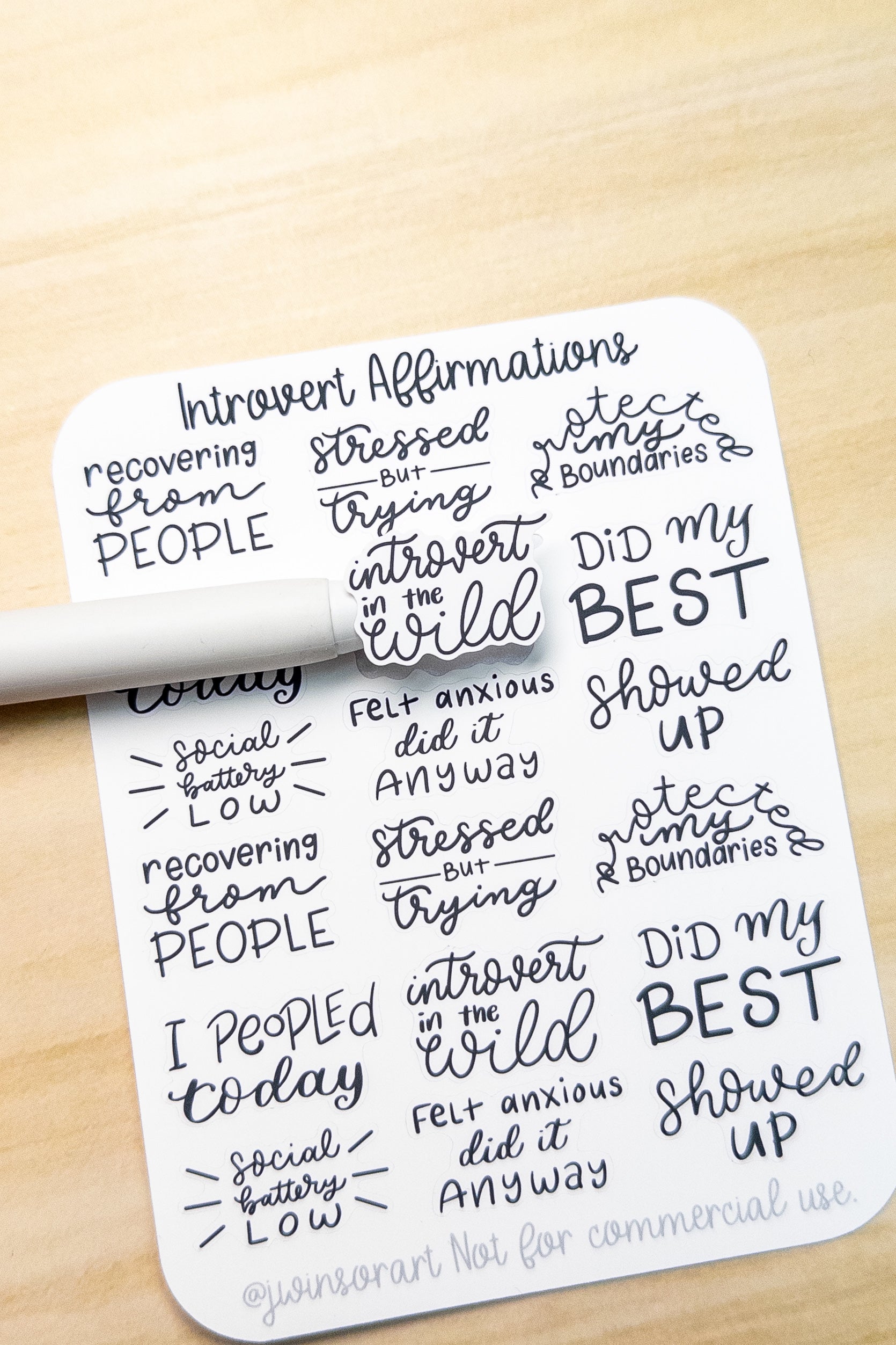 You can write on the matte sticker paper with ballpoint pens, gel pens, pencils, and fine permanent markers. It is not compatible with fountain pens as the ink will bleed.