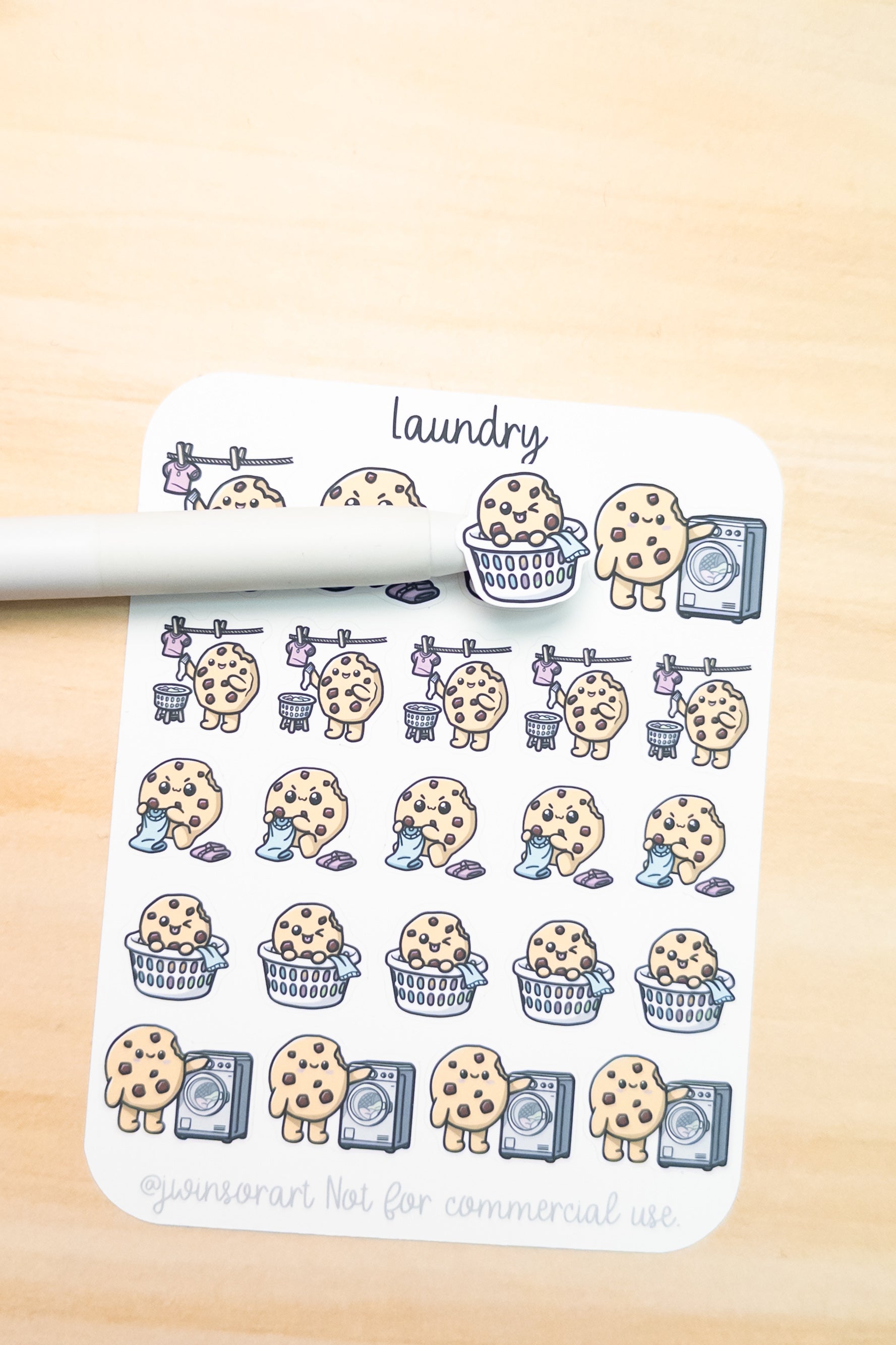 Laundry day themed cookie character stickers for your planner, bullet journal, and other scrapbooking needs. Done in a simple, cute, kawaii art style.