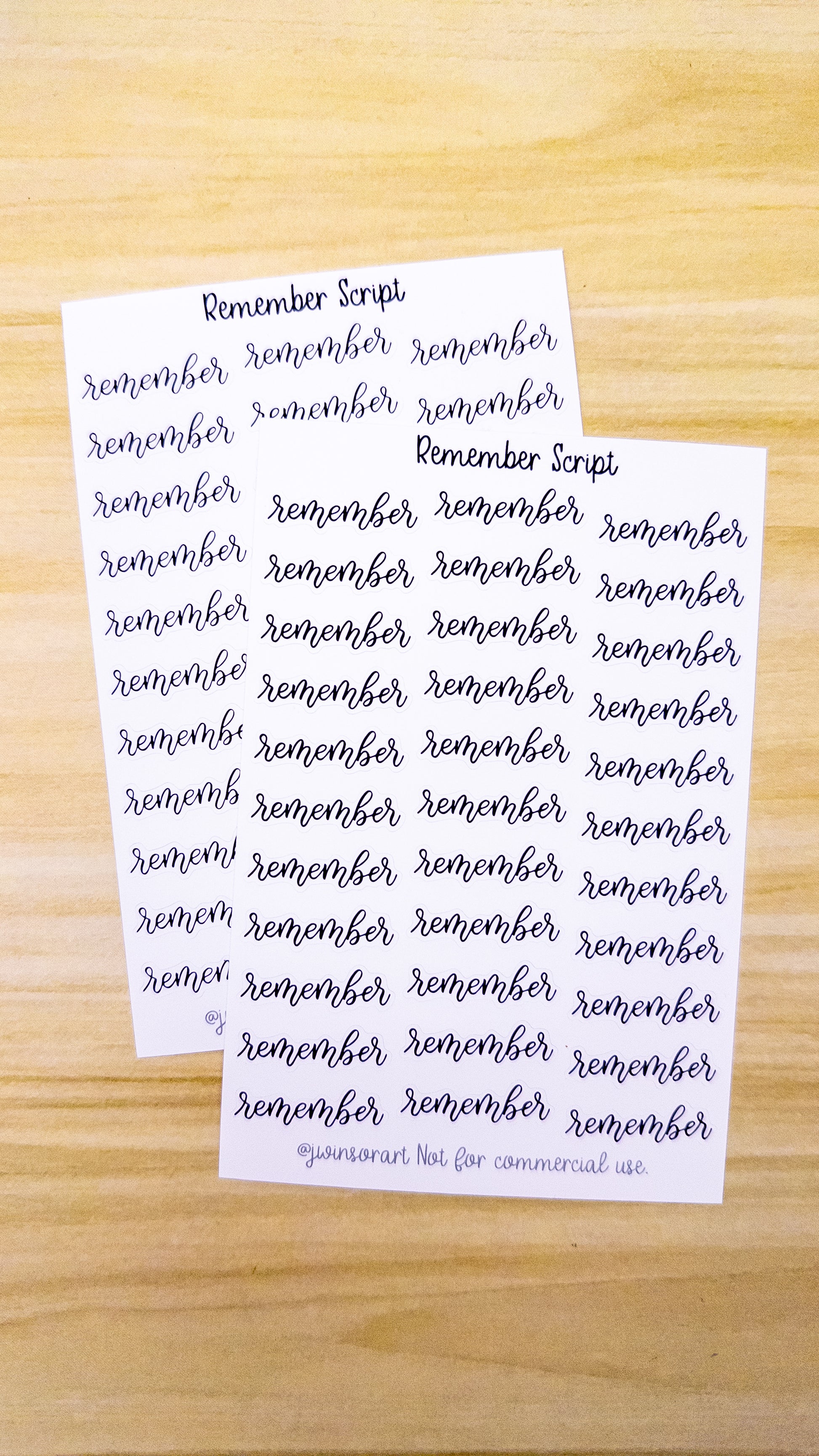 This listing is for one sticker sheet containing stickers for your planner, bullet journal, and other scrapbooking needs. This sheet contains 33 copies of the word "remember" individually die cut.