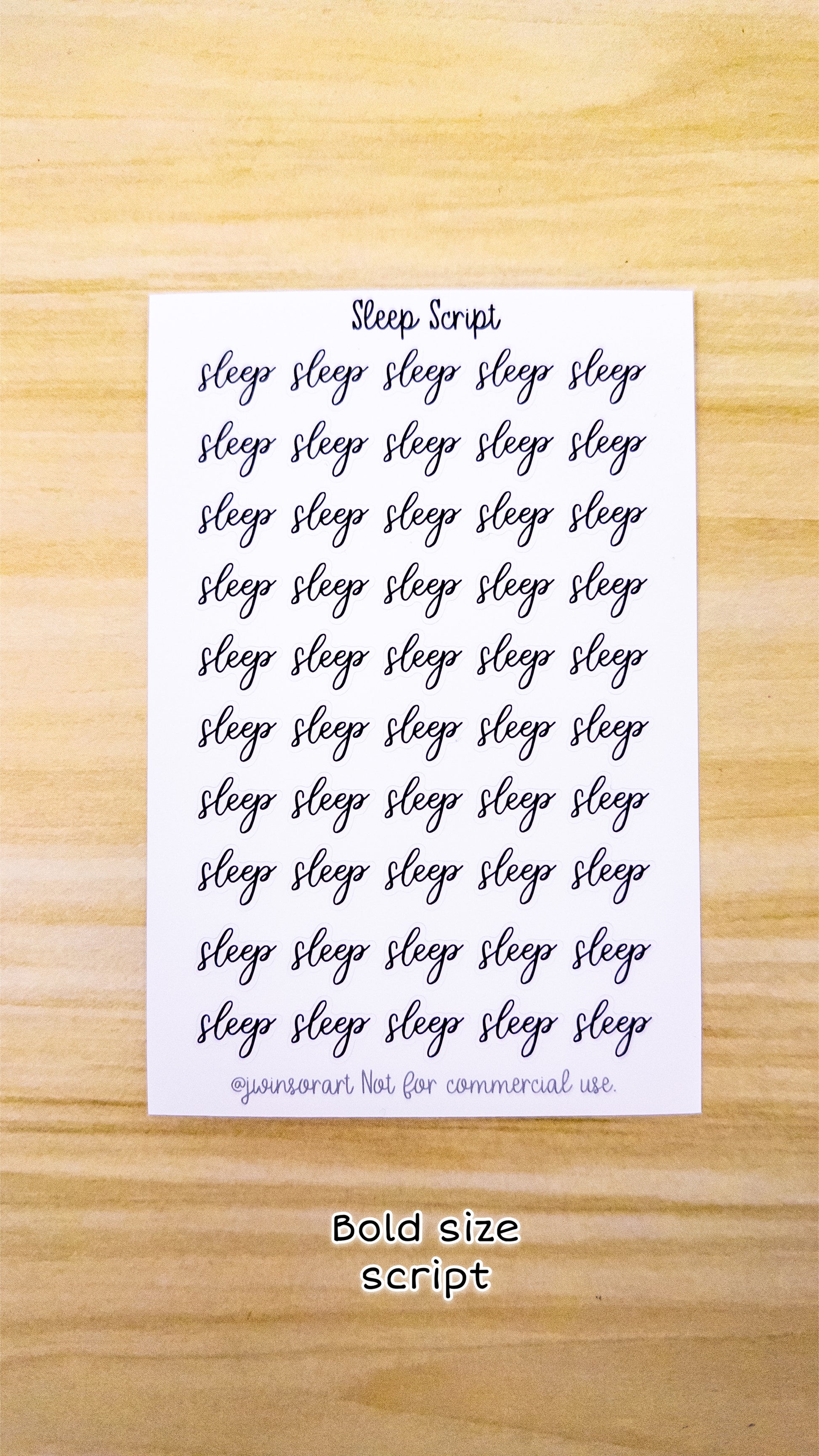This listing is for one sticker sheet containing stickers for your planner, bullet journal, and other scrapbooking needs. This sheet contains 50 copies of the word "sleep" individually die cut.