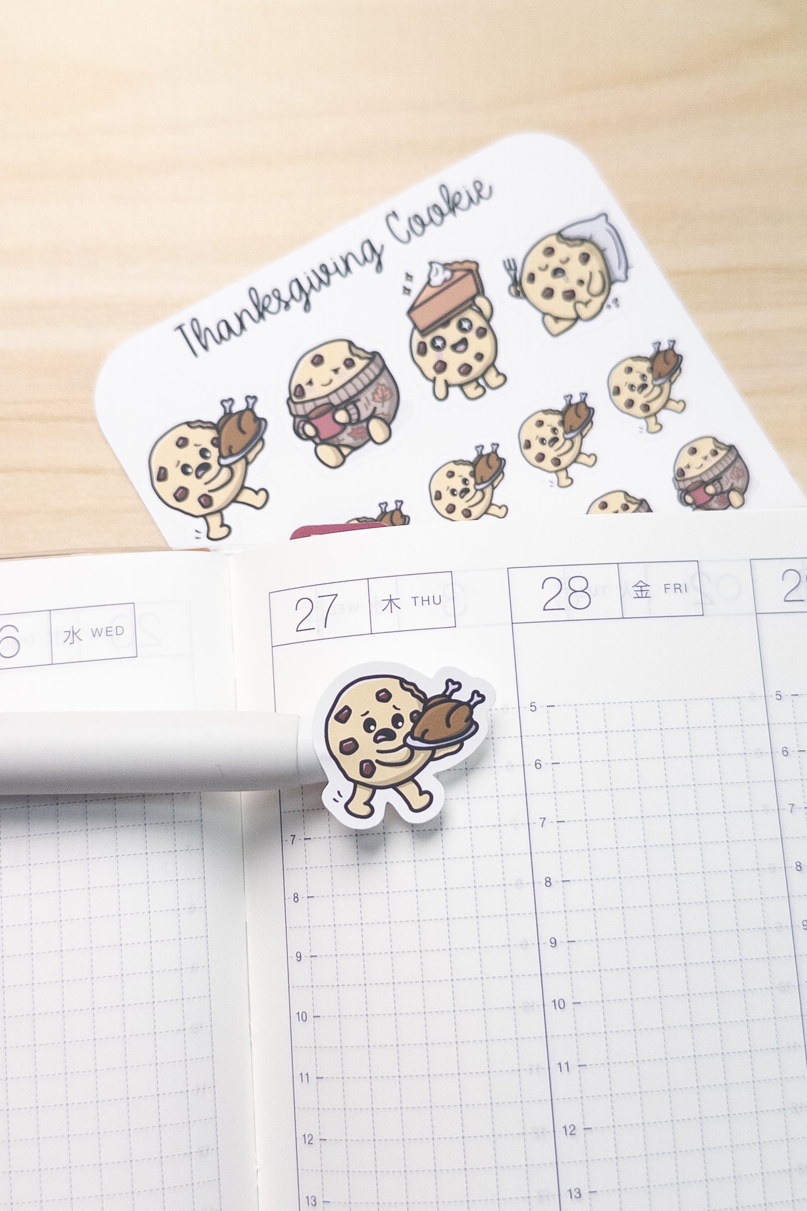 Thanksgiving-themed cookie character stickers for your planner, bullet journal, and other scrapbooking needs. Done in a simple, cute, kawaii art style.
