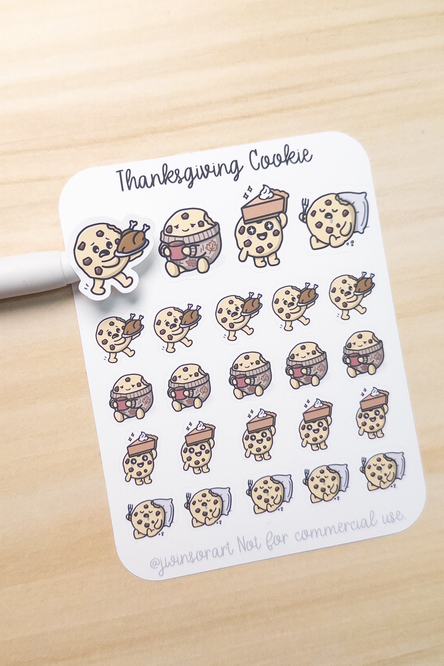 Includes 24 stickers of a cookie character experiencing the highs and lows of Thanksgiving.
