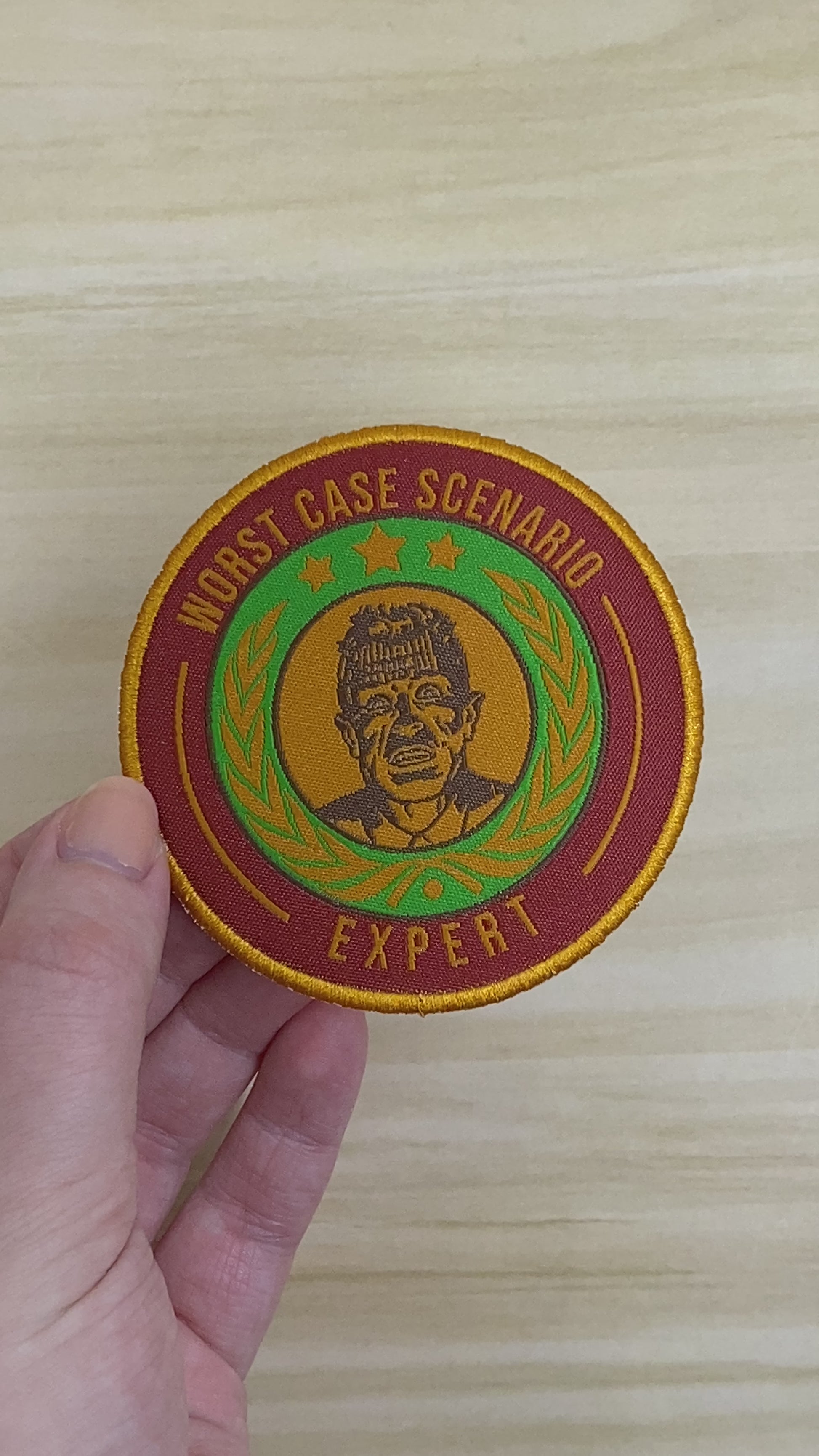 Etsy customer Worst Case Scenario Expert Embroidered Patch Merit Badge Woven 3 inch